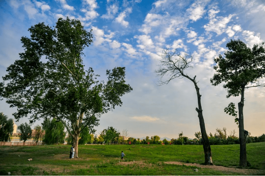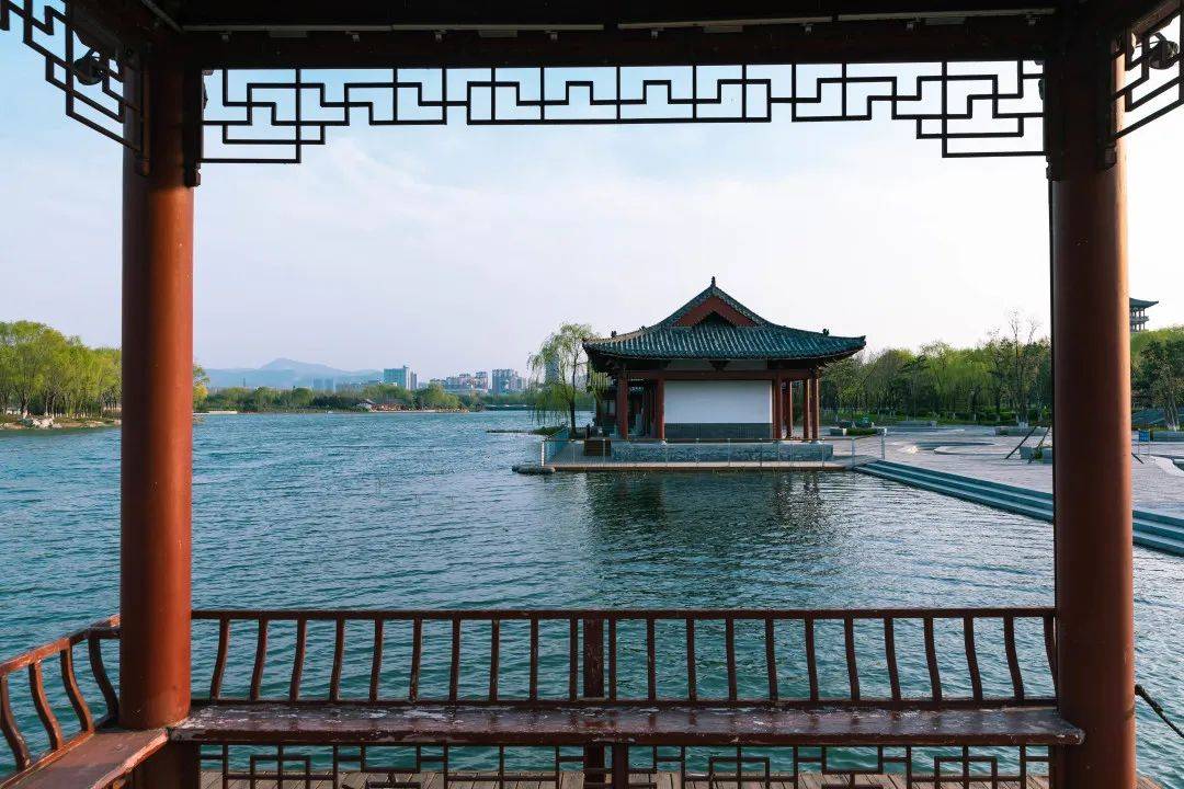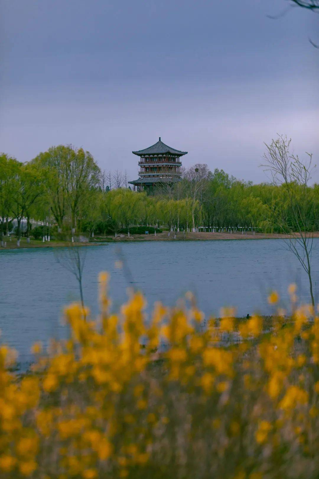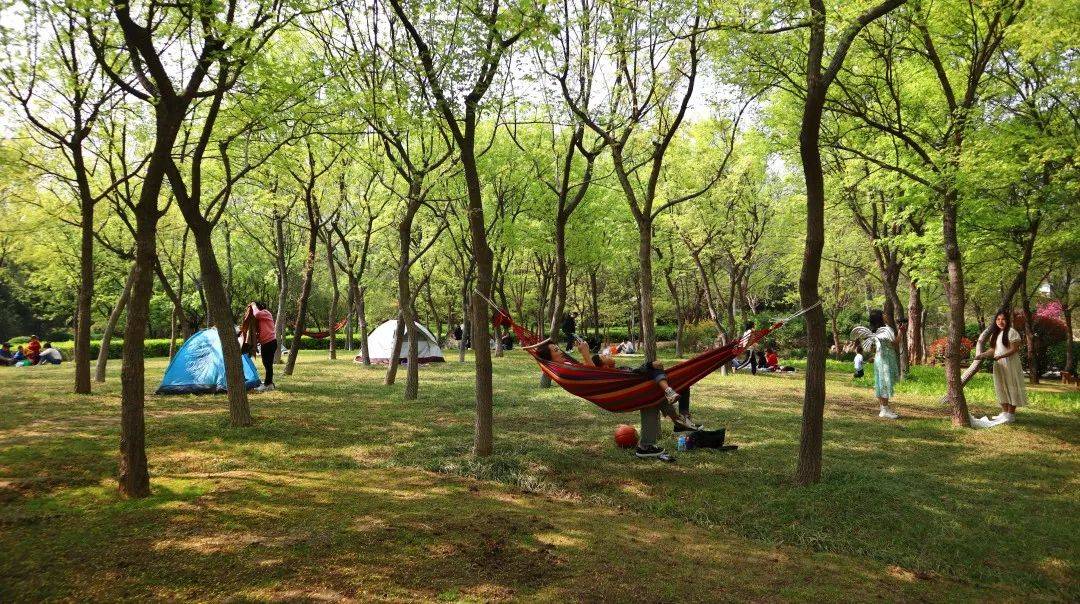 在这个暖意融融的春天,选个好天气,席地而坐,看蓝天、白云、青山、亭台悄悄地钻进清澈的湖水中,或者是夕阳西下,暖黄色的晖光将整个公园披上金黄色的外纱,或是与火遍朋友圈、小红书等社交媒体平台的“网红三棵树”合影打卡……