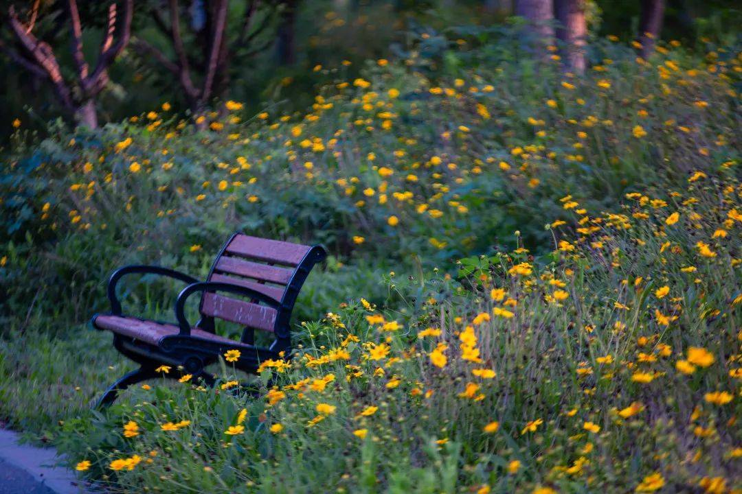 公园的小路旁还设置了多处长椅,逛累了可以随时坐下来歇会儿。花团锦簇、花香四溢、凉风清爽宜人,不拿手机记录这美好一刻简直太遗憾!