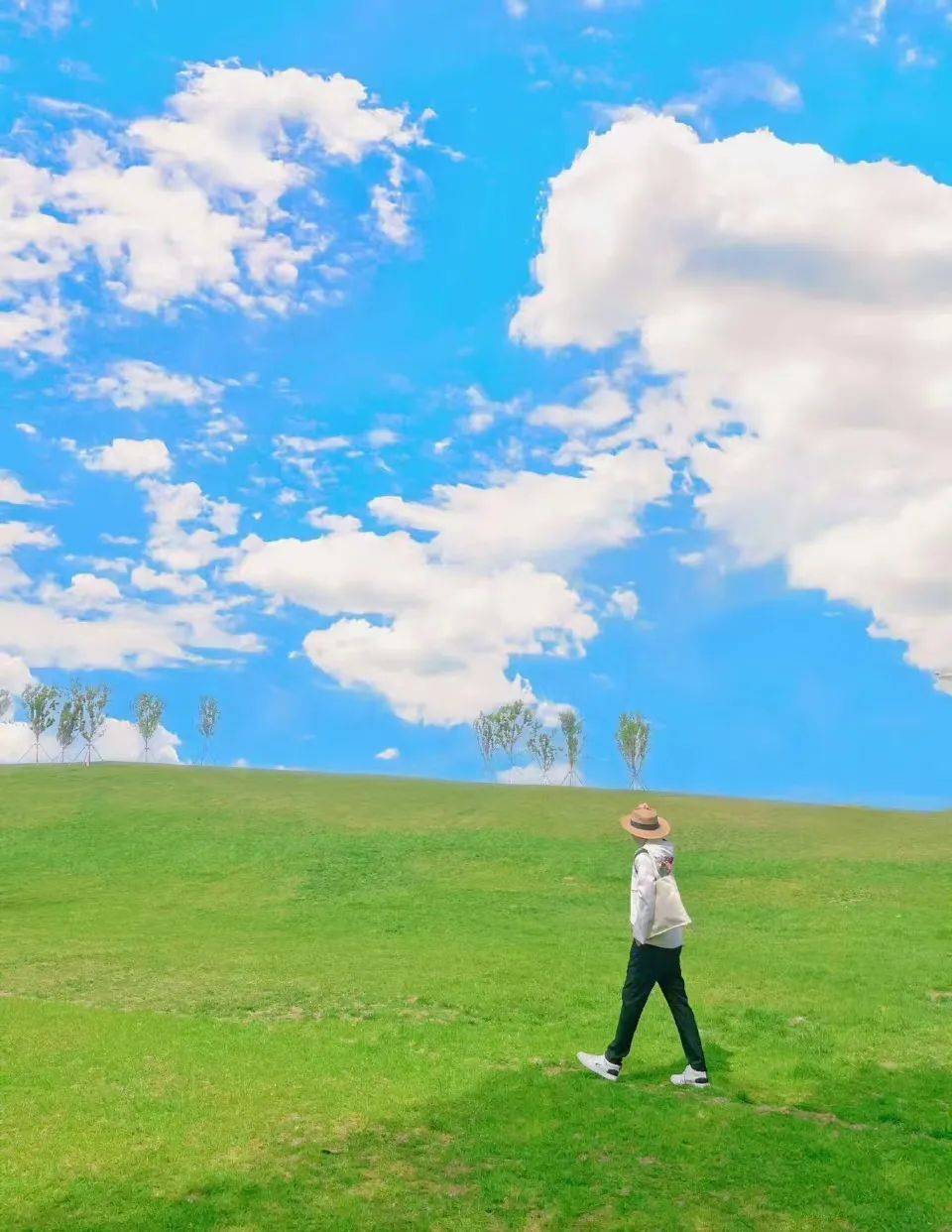 超大面积的草坪,让它成为一处藏在闹市中的拍照打卡地。这里视野开阔,心情舒畅,放眼望去,满目青绿,宛如置身大草原之上。