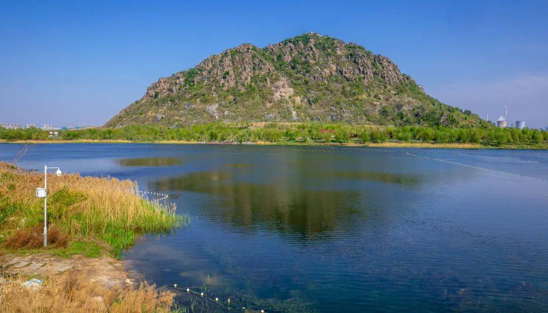 俊秀挺拔的华山下是碧水脉脉的华山湖,湖面波澜不惊,清澈无比,在阳光的照耀下,波光粼粼,闪耀着春的明媚。