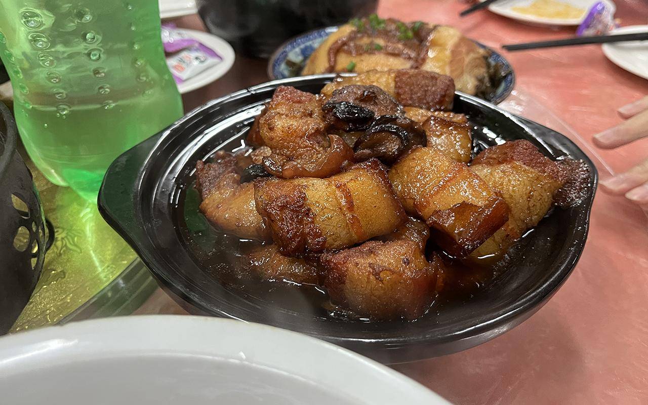 基本上只要稍微花点钱的菜,酒店就用小碗来做,就比如这个红烧肉,这是现做的,炖的也比较的软烂,口感还是不错的,只不过一桌子,给这么点也实在是“小气”,猪肉价格现在本身也不是很高,所以这个菜也并没有名贵多少。