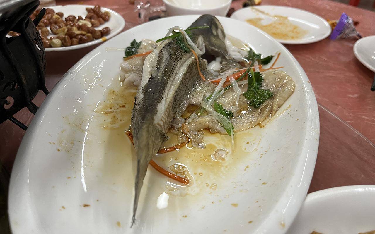 这个鱼也是特别小的那种,也不知道饭店是从哪里找的这种鱼,蒸出来的鲈鱼,口感实在不敢恭维,还不如自己在家里蒸的鱼,肉质很老,没有啥鲜味,倒的料汁都是比较多,而且色泽上也差点意思,饭店中做成这样,只能说水平还不够。