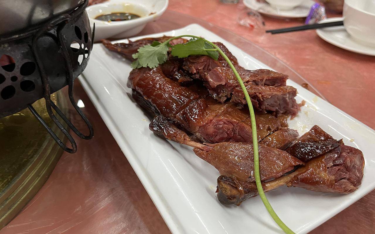 宴席上,上这个菜确实有些掉面子了,而且这个酱鸭,特别的小,就好像是街边烤炉上的那种鸭子,十几块钱就可以买一只,但是它这个明显比较少,估计还不到一只,这个菜算荤菜,有些掉档次了。