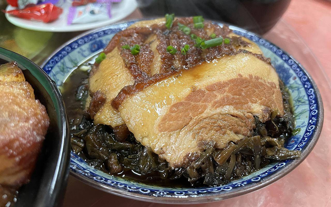 江西的宴席上,自然还少不了一道梅菜扣肉,只是这个菜好像和预制菜一样,肉相当的软烂,梅菜比较多,而且颜色还差点意思,这个菜,只要是宴席上,一般出现的概率都比较大,尤其是这种乔迁宴中。
