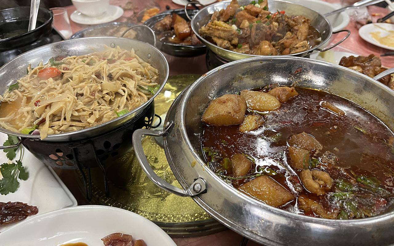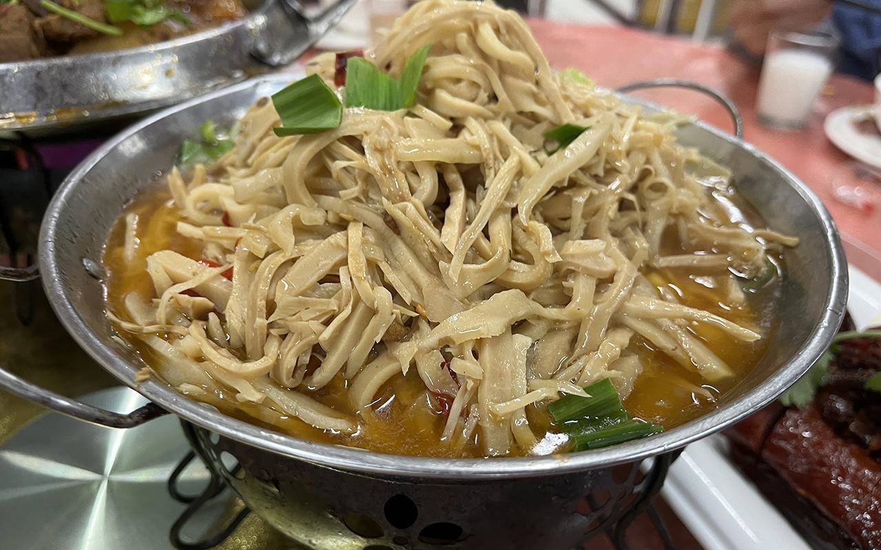 这可是江西赣北地区的名菜了,选用的是竹笋,切的比较细的那种,经过浸泡压烂,然后再来炒,接着上菜的时候,还会来上一个小酒精炉子,一边炖一边吃,这个菜说句实在话,成本是极低的,因为江西基本上每个地区都不缺少笋子,这算是很廉价的菜了。