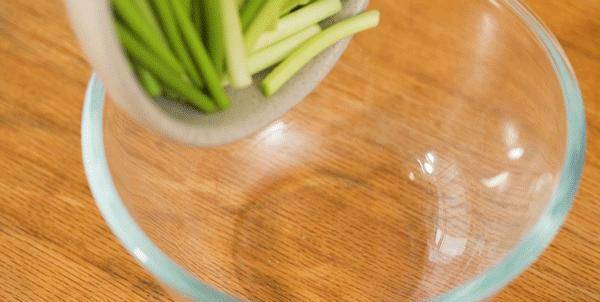 2.蒜薹用2小勺盐腌渍半小时,用凉白开洗掉多余的盐分,沥干水分备用