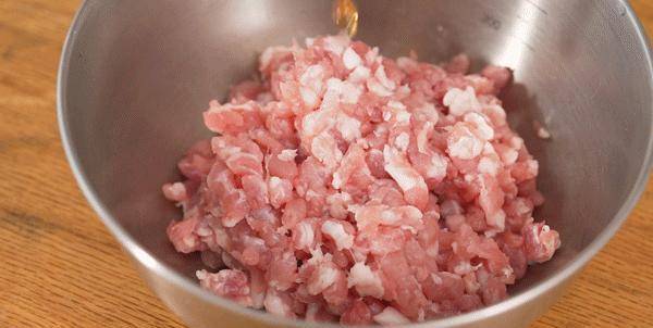 2.猪肉末中加入1小勺料酒、1/2小勺盐、1小勺细砂糖、1小勺生抽、1/2小勺老抽,搅拌均匀,腌制10-20分钟