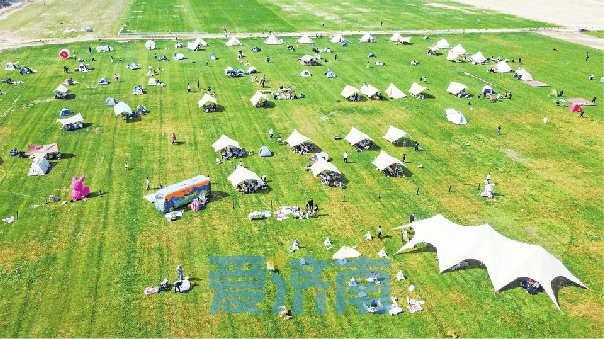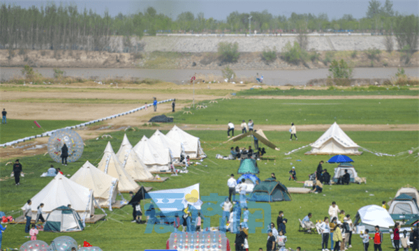 原标题:济南黄河畔“坝上草原”披绿 周末兴起帐篷度假游