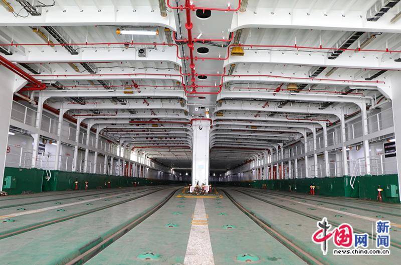 图为客滚船内的火车停放区域。中国网记者 吴亮 摄