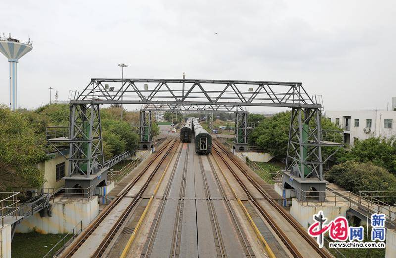 图为火车缓慢地向客滚船驶来。中国网记者 吴亮 摄