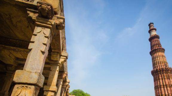 塔周围的建筑也具有很高的知名度和参考价值,包括Arai-DarwazaGate、伊斯兰权力清真寺、大铁柱等,这些建筑被废弃,被称为“国外七大奇迹之一””。最引人注目的建筑之一是Arai-DarvazaGate,这是一座典型的伊斯兰风格建筑,一半由大理石制成,另一半由红砂岩制成,这一面雕刻着精美的图案红砂岩的,图案的内容很多,但没有人能解释它的意思。