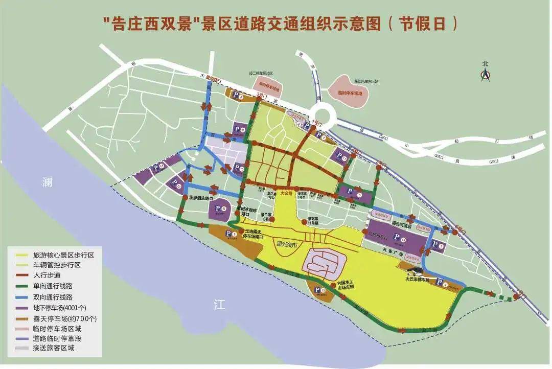告庄景区(步行街道路)采取临时交通管制,对车辆进行临时性交通管制和分流。