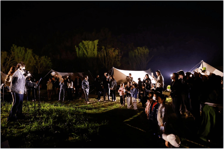 吃饱喝足后,青山生态绿地上为体验团举办了星空露营大会,不仅有路虎后备箱市集、秋の移动咖啡车、星空音乐会,还有丰富的餐饮美食自助,深度感受余杭黄湖青山未来乡村休闲生态。
