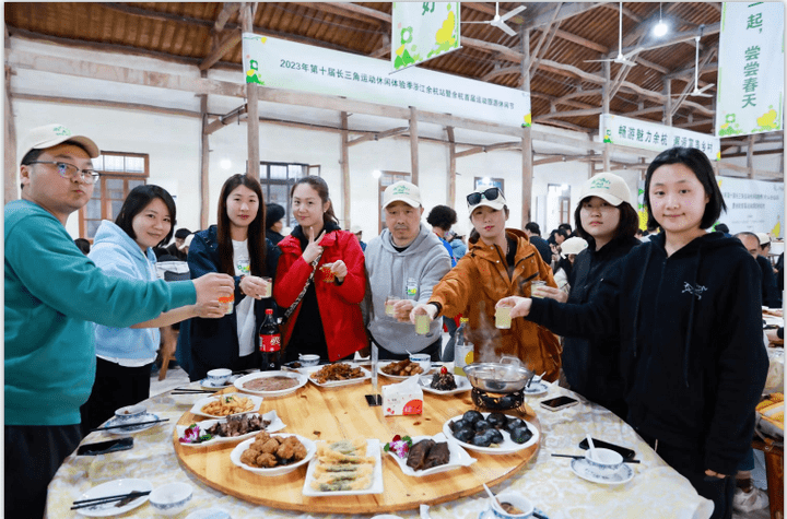 除了休闲运动项目体验,吃喝玩乐当然也是少不了。当天晚上,在红心礼堂举办的青山“春”宴,尽是地道的春日山鲜美食!令体验团大快朵颐。
