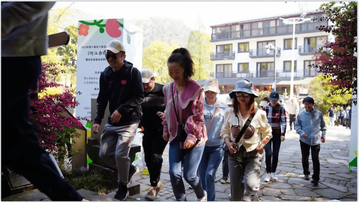 4月8日,春和景明,万物复苏,经过春雨洗礼的青山村一派春日融融的景象,2023年第十届长三角运动休闲体验游新闻发布会在余杭区黄湖镇青山村融设计图书馆内举行。