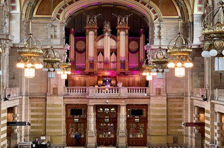 一进入博物馆,参观者立刻被这个巨大的空间所震撼。中央大厅二楼的管风琴是该博物馆的镇馆之宝,该管风琴包括289个发声管,在1901年格拉斯哥世界博览会中与博物馆首次亮相,由英国著名管风琴公司Lewis&C哦、设计建造。