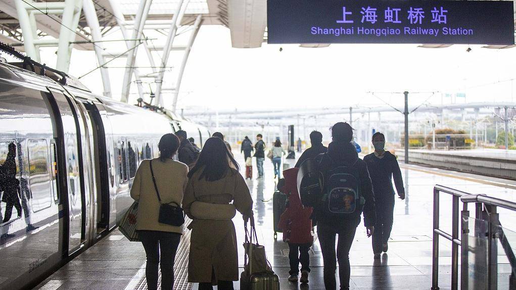 2023年3月17日,旅客在上海虹桥站站台上车。视觉中国 图