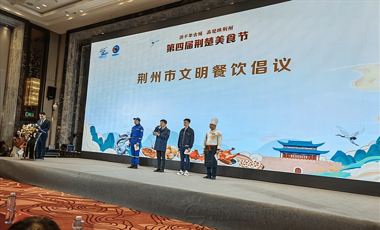 副市长李敢宣布第四届荆楚美食节开幕。开幕式上,荆州市被授予“楚菜地标美食城市”称号,“宜荆荆恩城市圈”的行业代表也受邀来到现场,发表联合宣言,共同为推进楚菜的研发创新和宣传推介出力,荆州市商务局还专门策划推出一款美食文创产品。