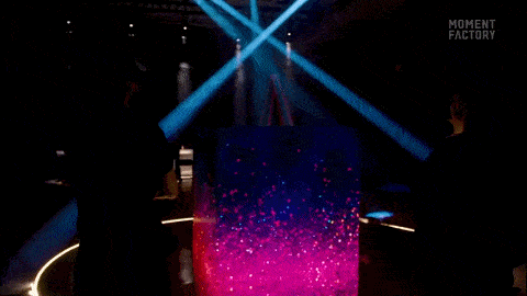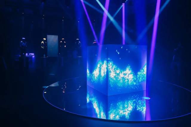 整个体验过程最耐人寻味的要数被称为“湖”的空间,这是“après-ski体验的艺术写照”,Moment Factory团队使用镜子、光束和LED立方体来表现它,希望参观者能找到真实的在山上徒步旅行、滑雪或单板滑雪时相似的体验,感受大自然的美丽与多变。