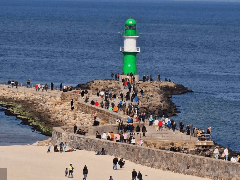 德国梅克伦堡-西波美拉尼亚州瓦尔讷明德,灯塔与灯塔之间的景观。