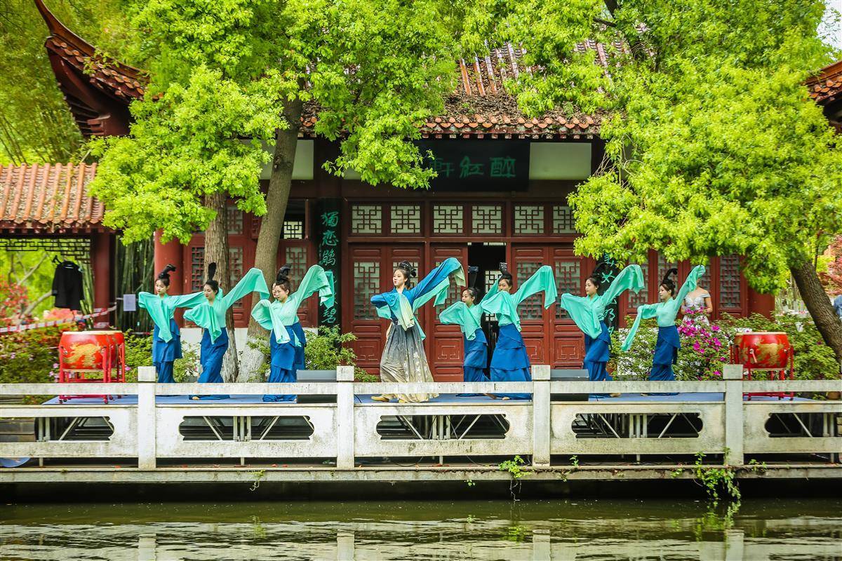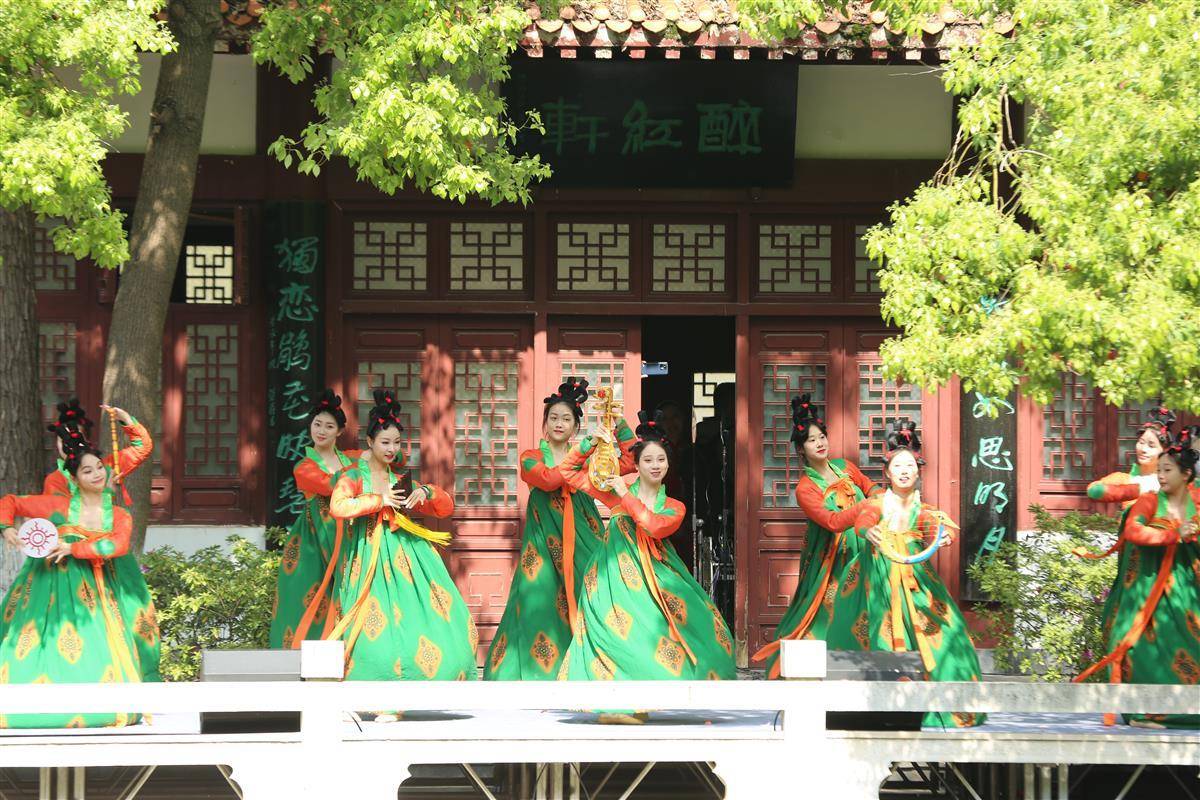 与此同时,“美”上热搜的《唐宫夜宴》舞也来到了青山公园,憨态可掬的唐朝小乐伎,耳目一新的唐装服饰,绯红绚丽的“斜红”妆容等等,完美呈现出一幅“盛唐夜宴图”。
