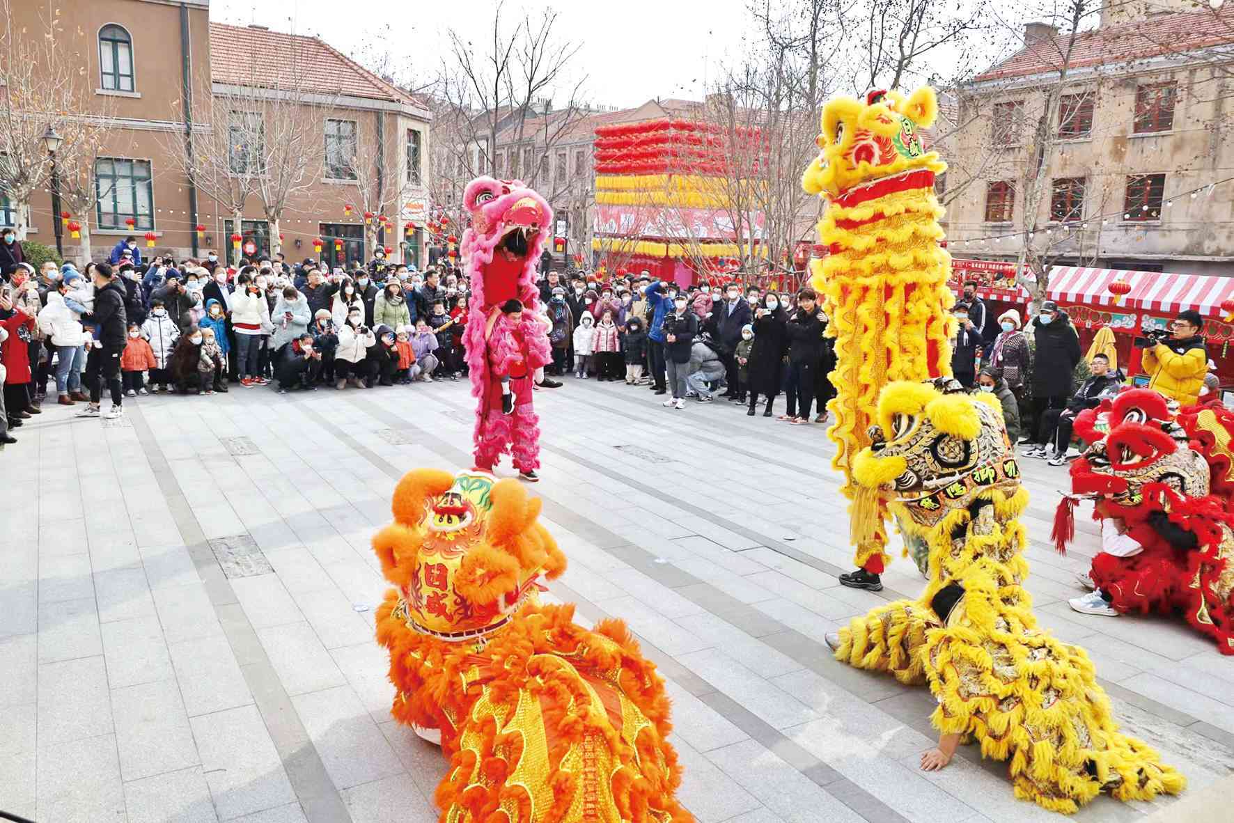 青岛市文化馆在当地历史文化街区大鲍岛组织民俗文艺演出 孙文丽 摄