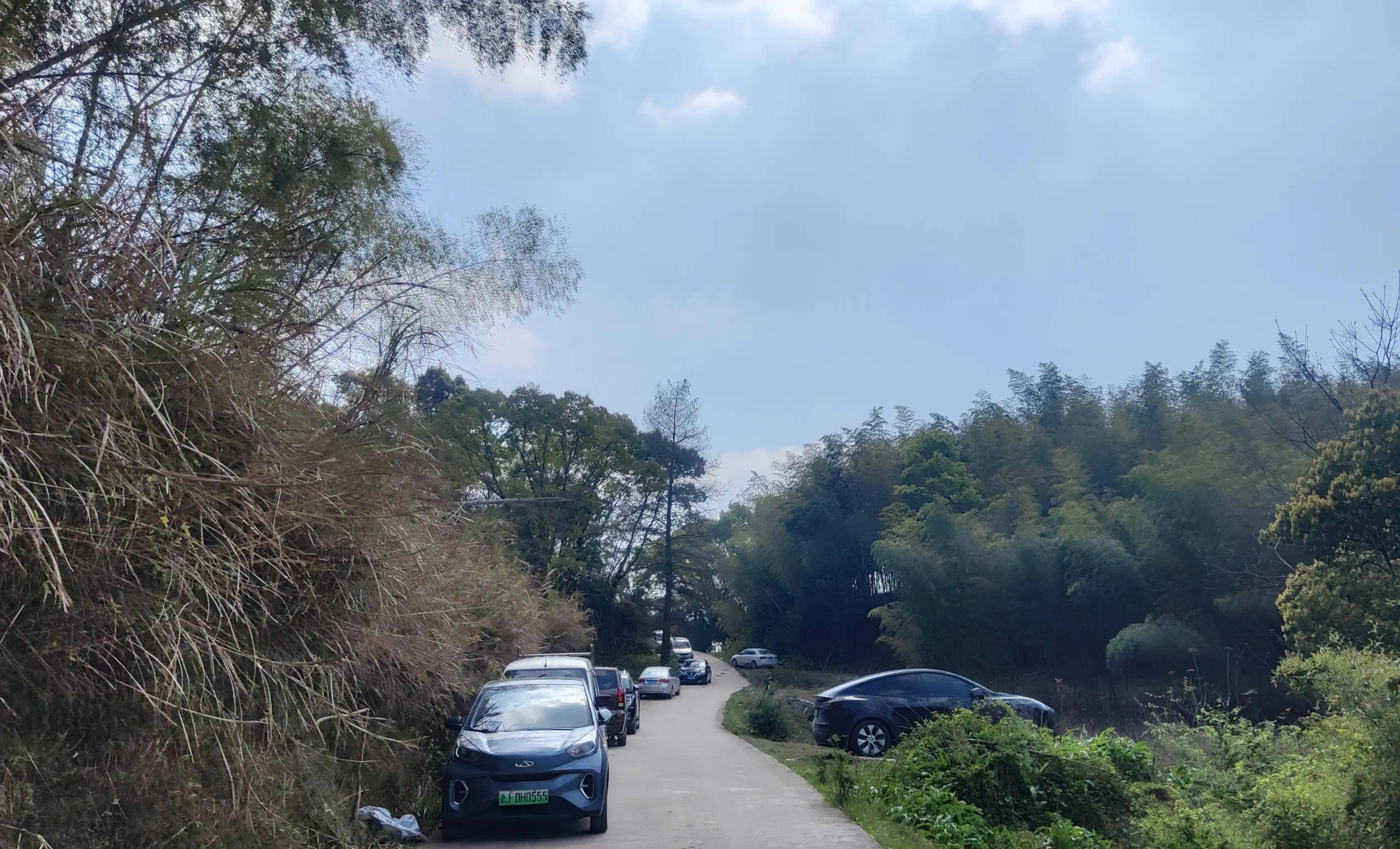 从南蒋古村到雉鸡湾的沿途,不时可见停在路边的家轿。特别是滥田湾岔路口、村庙旁以及雉鸡湾和踏道下这四处地方,停着的车子都差不多排成了队。这种情形在平时是绝对见不到的。