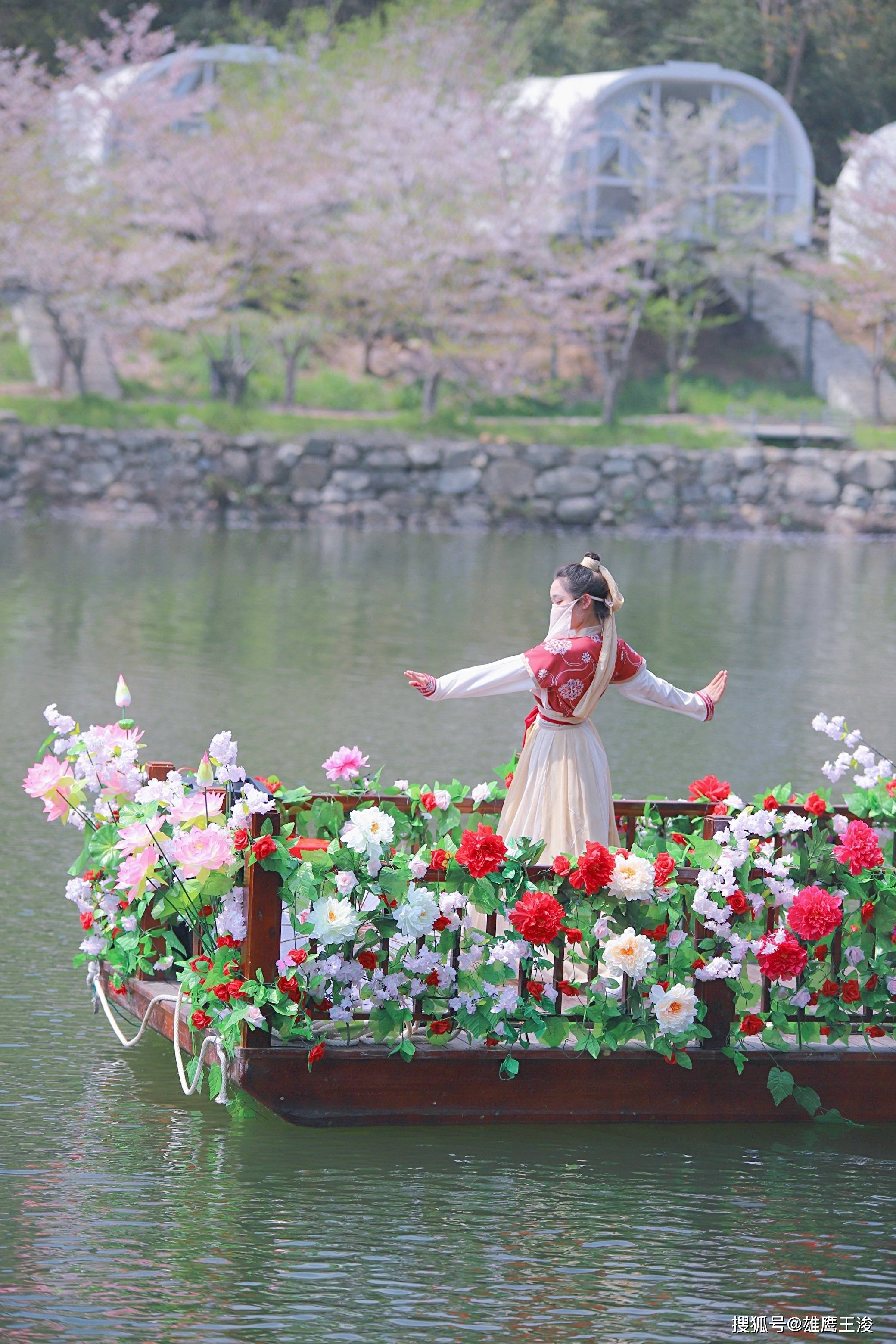 走过一段古朴沧桑的步道,就来到了秀丽的湖边。清风一吹,湖水就轻轻地荡漾,美丽极了。湖上还有一艘花船,船上的姑娘偶尔还会来一段优美的舞蹈。再加上湖边种植了很多的樱花树,在那碧水蓝天的映衬下真的好美好美。