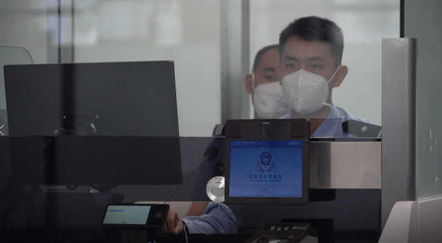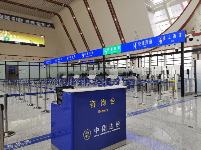 在通过海关检查后,您就来到了最后一关——出入境边防检查。目前磨憨站出境边检大厅共设有出境通道13条,其中人工智能查验通道10条、快捷通道2条、员工通道1条(目前快捷通道暂未启用),现场除特别通道和员工通道以外,可随意选择一条旅客较少的通道排队办理出境边防检查手续,待移民管理警察核验您的人员身份信息无异常后,加盖出境验讫章,取回证件便可离开查验区。如需进行移民管理通关政策答疑或信息咨询,可拨打国家移民管理机构12367服务平台进行咨询。