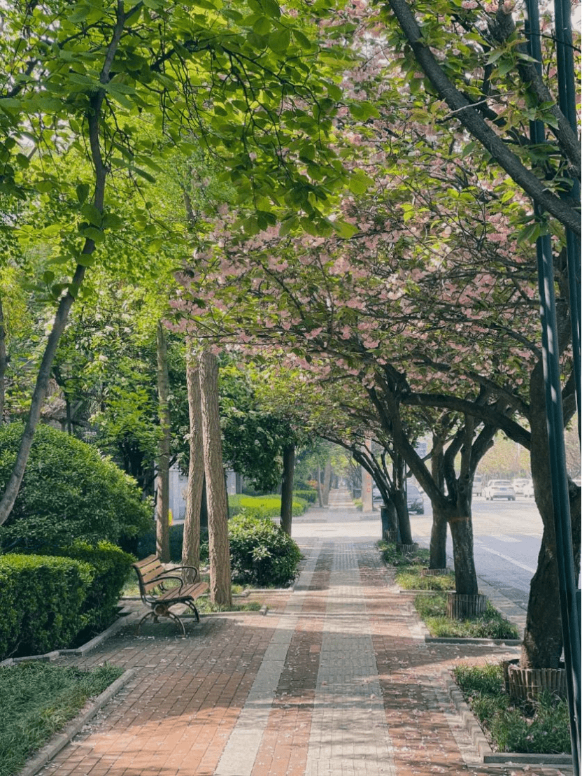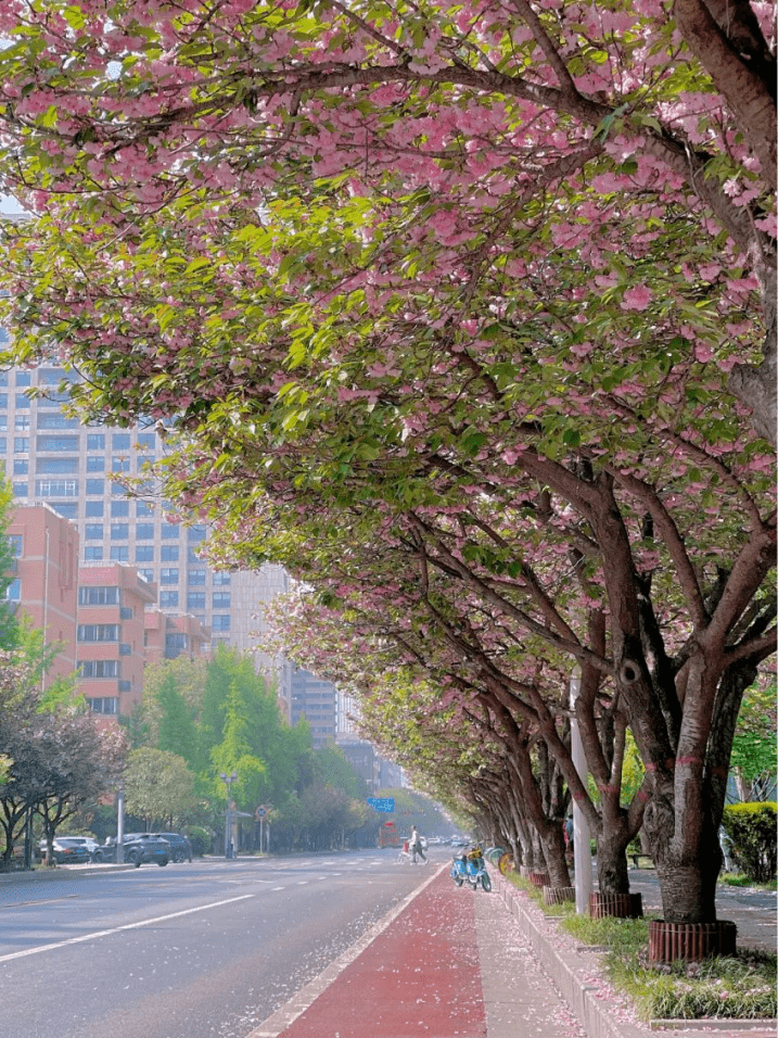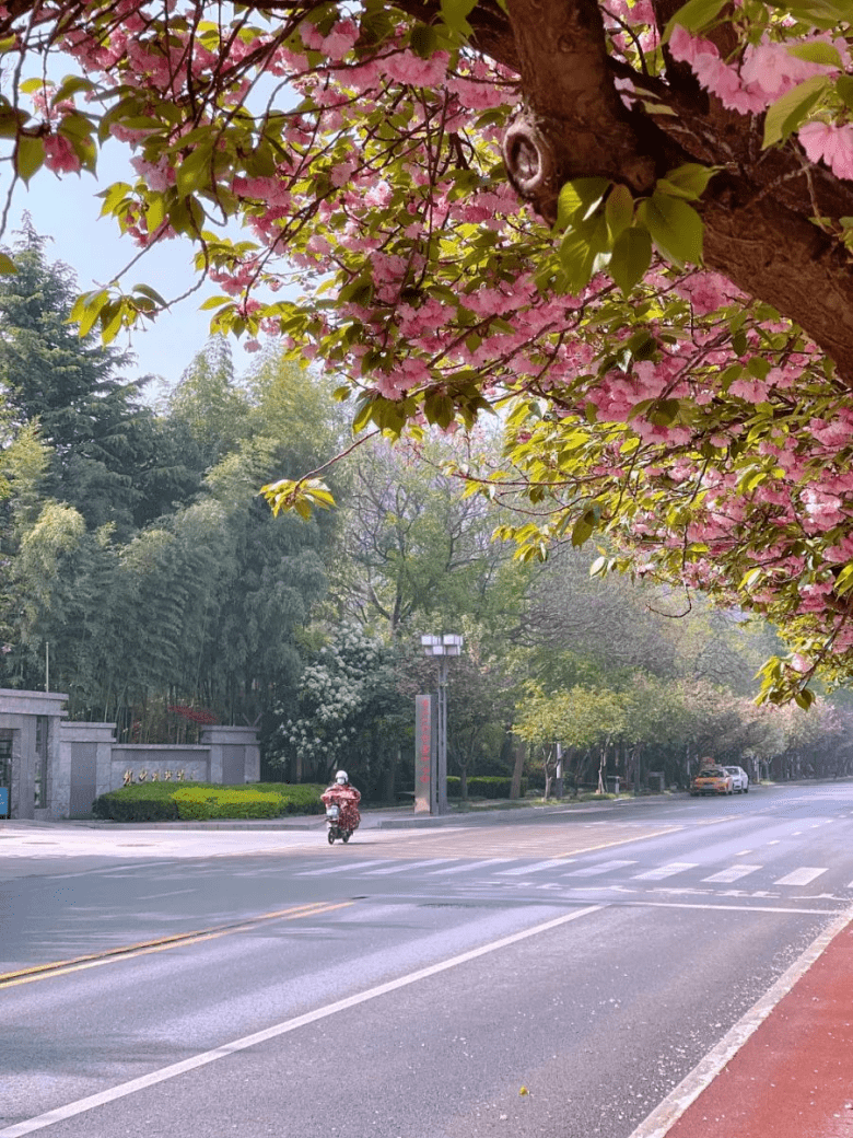 近期,沐浴过春风细雨、盛满樱花的高新二路,已然开启樱花雨状态。