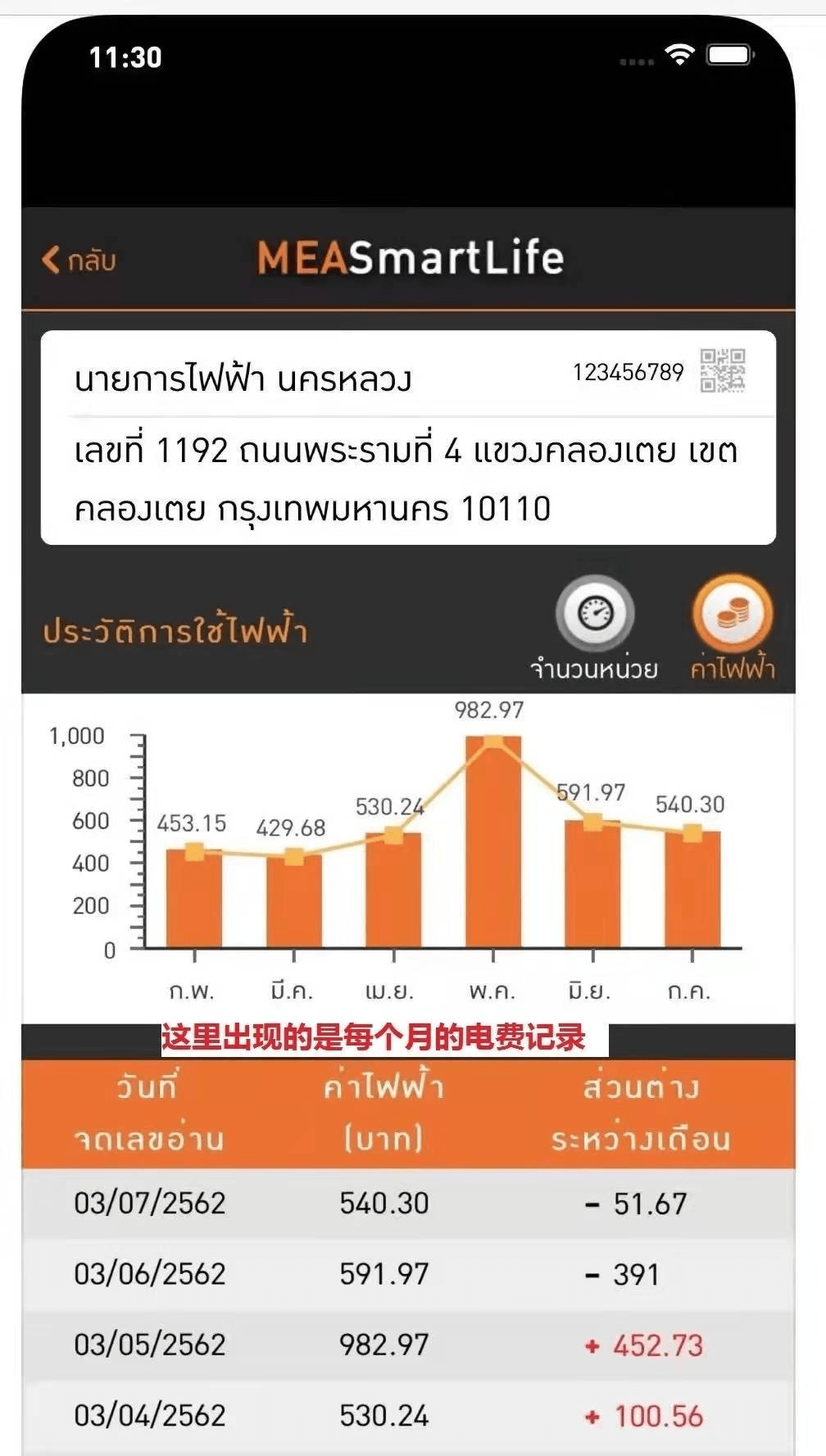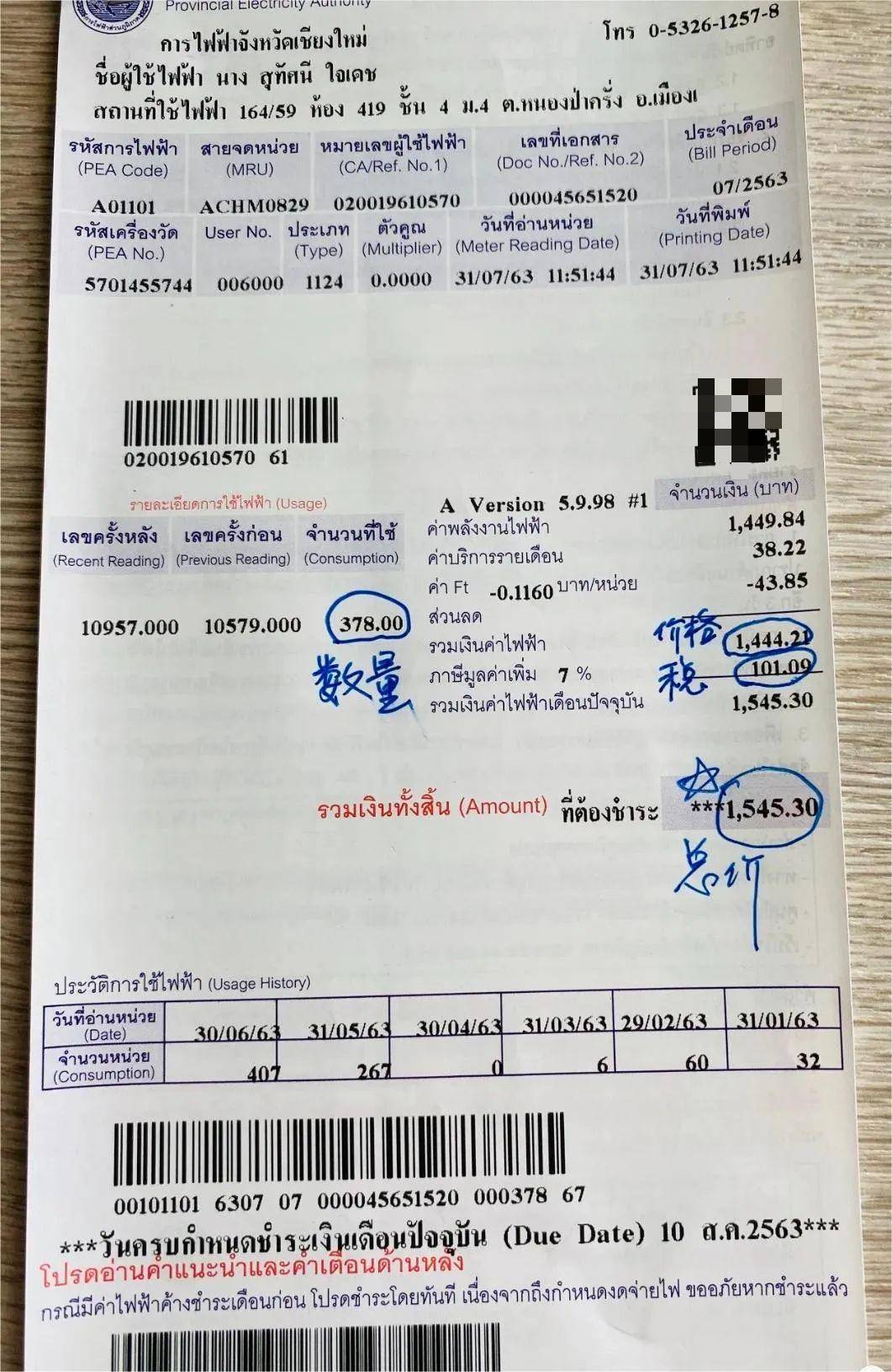 需要注意的是,就算你不用电,每个月也会产生40.9泰铢的最低额度的电费!
