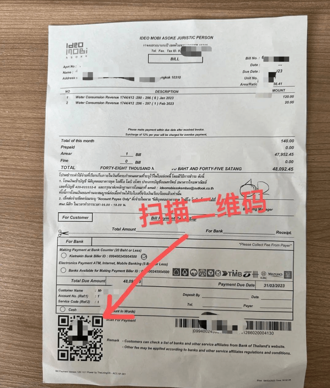 如果人在外国,记得留一个物业人员的邮箱,来不及回泰国缴物业费时,让物业人员把物业账单发给你,在国内扫码支付就行!如果你没有泰国银行卡,你可以找人代你支付这个费用,或者你亲自去支付,如果你的房子是出租的,那么中介一般会协助你处理,就会比较简单。