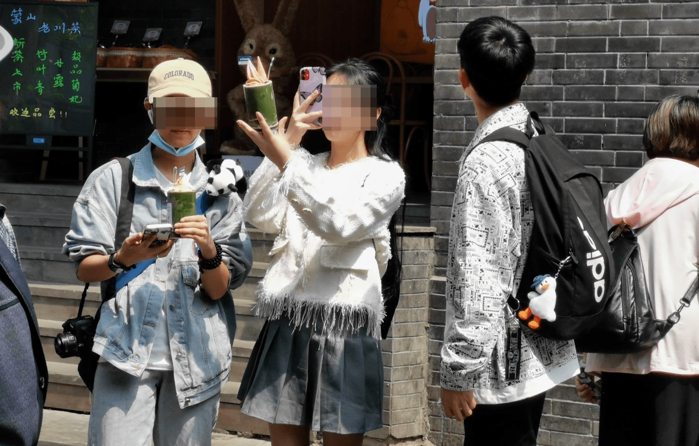 记者注意到,大部分顾客拿到奶茶后,都要先举起竹筒杯,选一个背景,用手机自拍。现场,除了年轻人,还有一些中老年顾客被这种款式新颖的奶茶所吸引,“很新鲜,想尝一下。”一位阿姨说。