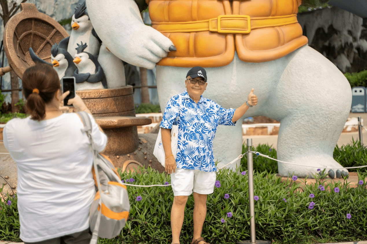 马来西亚游客在海洋乐园拍照留念