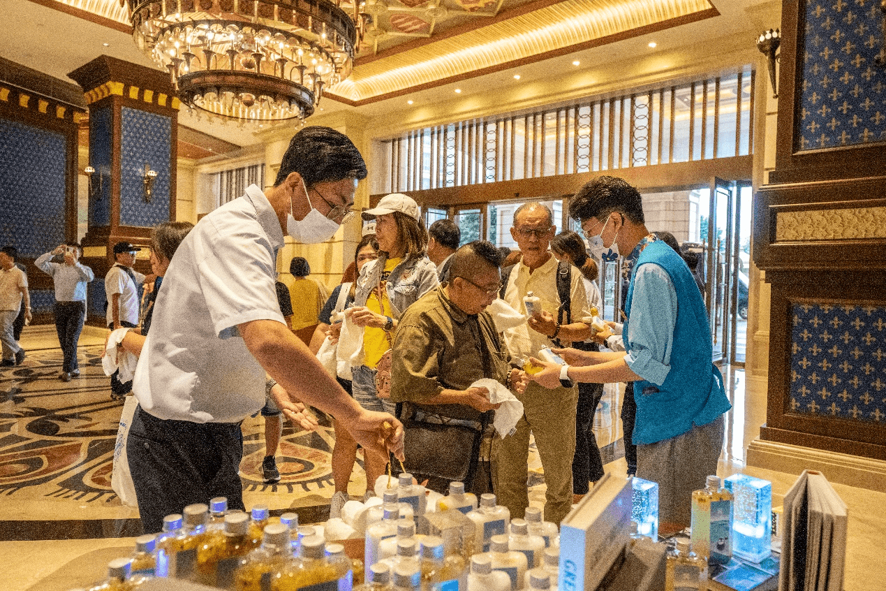 欢快的迎宾舞蹈、专属的温馨服务、独具特色的海南饮品……当天,海花岛在欧堡酒店举行隆重而简短的欢迎仪式,迎接远道而来的游客,充分展现了海花岛热情好客的东道主形象。