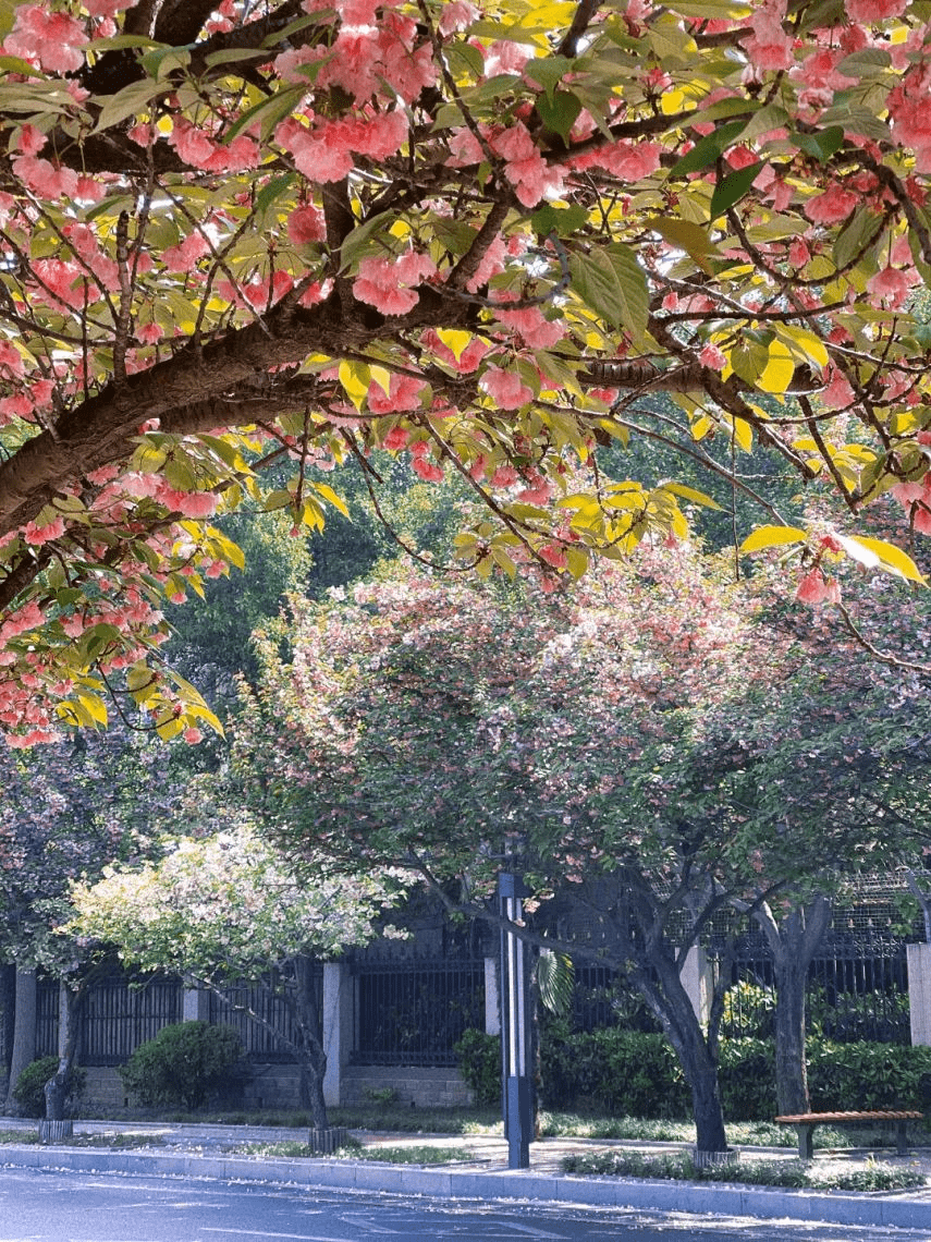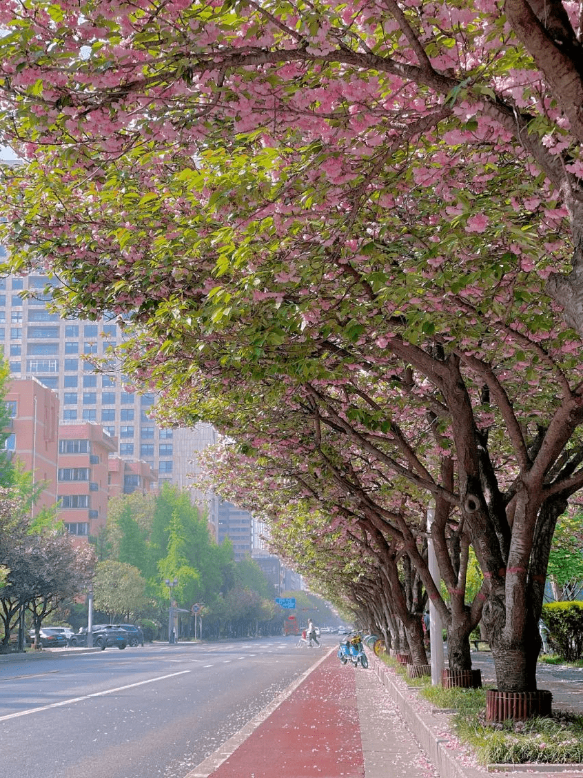 风吹动满树枝桠,樱瓣四漫,翩翩起舞,犹如下了一场“樱花雨”,带来与春天的缱绻邂逅。行人或在樱花树下静坐,或是走在满是樱花的大道上,好不惬意。在这场樱花雨中,仿佛拥抱了一整个春天。