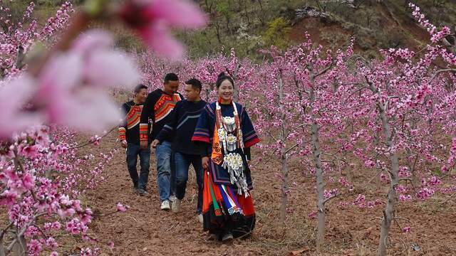 三四月份,春风和煦,百花盛开,正是一年好春光。跟随春天的步伐,凉山州美姑县典补乡的数百亩桃花次第盛放,美不胜收,迎来最佳观赏期,人们纷纷前往踏青赏花,不负旖旎好春光。桃花灼灼,十里芳华,粉色花带与周边起伏延绵的山脉相辅相成,把这里的乡村装扮得格外俏丽动人。黄桃园里成为不少年轻人争相打卡的“网红目的地,“赏花经济”带热了典补乡的乡村旅游。