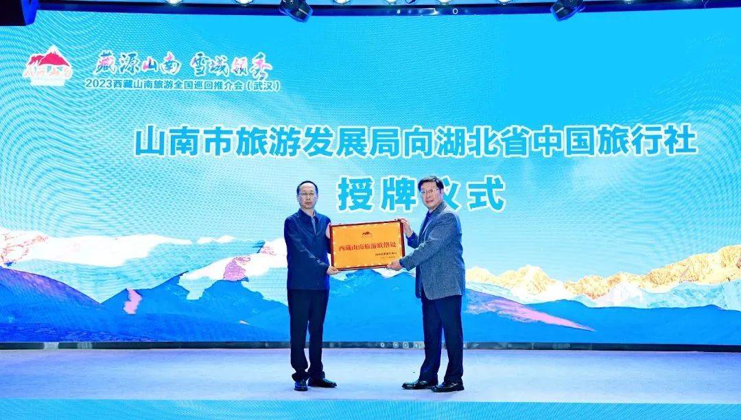 推介会上,山南市作重点旅游产业项目招商推介,乃东县、曲松县分别带来旅游产品推介。山南市旅游发展局与湖北峡州国际旅行社等9家单位签订送客入藏合作意向。此外,为加强山南与湖北的旅游交流合作,邀请更多湖北游客走进山南,山南市旅游发展局授予湖北省中国旅行社“西藏自治区山南旅游联络处”。