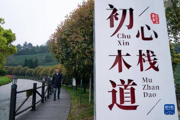 4月6日,彭锐行走在树山村的木栈道上。 新华社记者 李博 摄