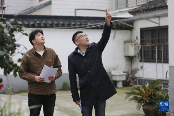4月6日,彭锐在江苏省苏州市高新区通安镇树山村与其团队走访村民宅院,规划下一步设计。 新华社记者 柳文惠 摄
