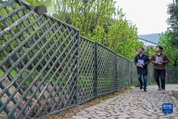4月6日,彭锐(左)和助手在树山村走访调研。 新华社记者 李博 摄