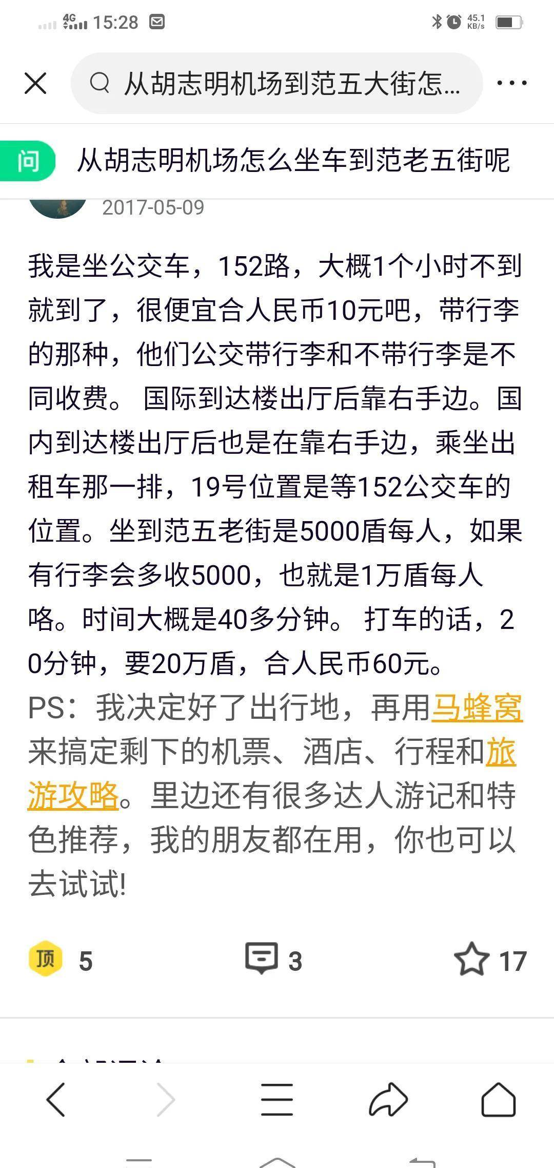 按网上,找152公交车,上车给5000,找座位坐,人不多,上车还帮助越南老大爷搬箱子上。