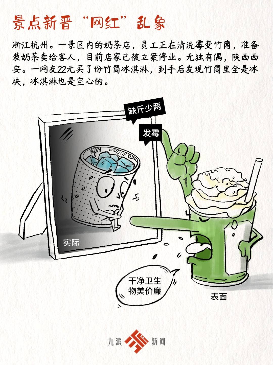 浙江杭州。有网友发现景区内的奶茶店,员工正在清洗霉变竹筒,准备用来装奶茶。目前店家已被立案停业;无独有偶,陕西西安。一网友22元买了一份竹筒冰淇淋,到手后发现竹筒里全是冰块,冰淇淋也是空心的。