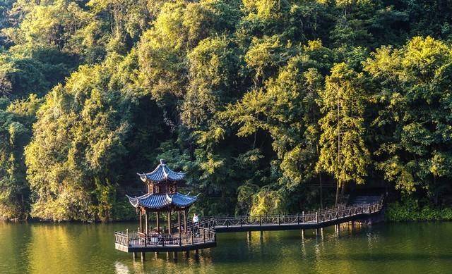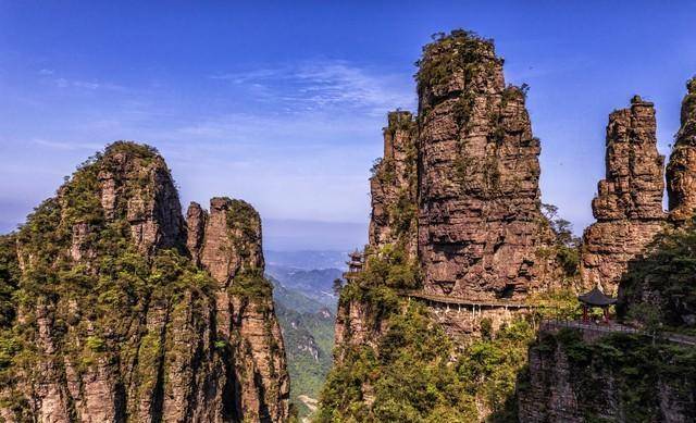 这里不仅是一个天然的氧吧,而且还是一个避暑胜地。森林覆盖率高,植物种类繁多,植被茂盛,空气清新。龙潭峡谷是一处三面朱红色垂直岩壁,高差达400多米的峡谷,环抱着龙潭瀑布,夏天来这里游山玩水,真的是太适合不过了。看着层层叠叠的山峦,心中的感觉真的是特别的爽,所谓站得高看得远,看到的一切都是风景,心中的烦恼也会全无。夏天这里的溪水特别的清凉,呼吸着清新的空气,在这里避暑度夏真的是太合适不过了。这里还是电视连续剧《太平天国》主要公园拍摄基地之一。