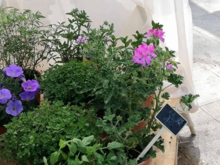 天竺葵又名驱蚊草(主要指香叶天竺葵),花朵色彩鲜艳。红、粉、橙的颜色各有千秋,又在一众绿意中脱颖而出,具有观赏价值,可室内摆放。