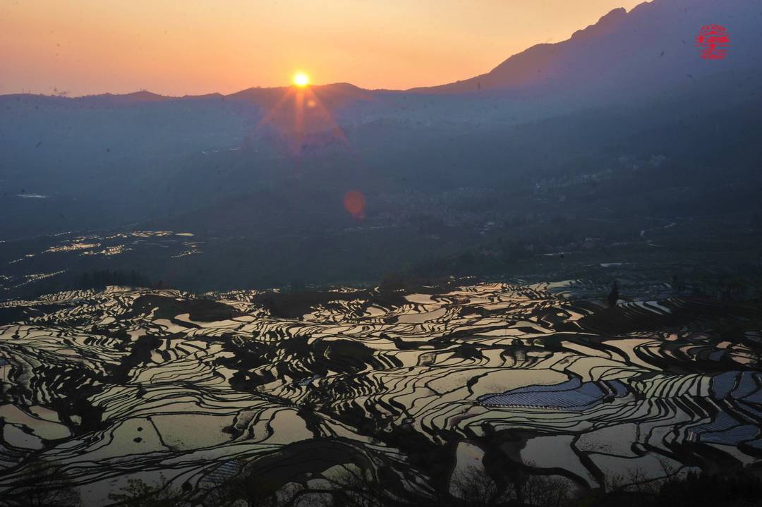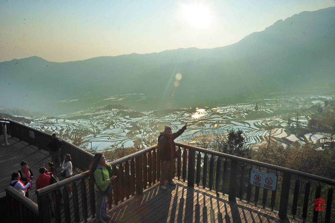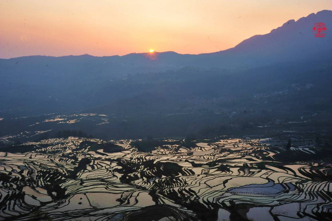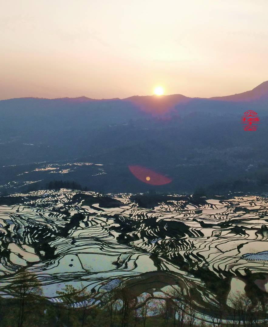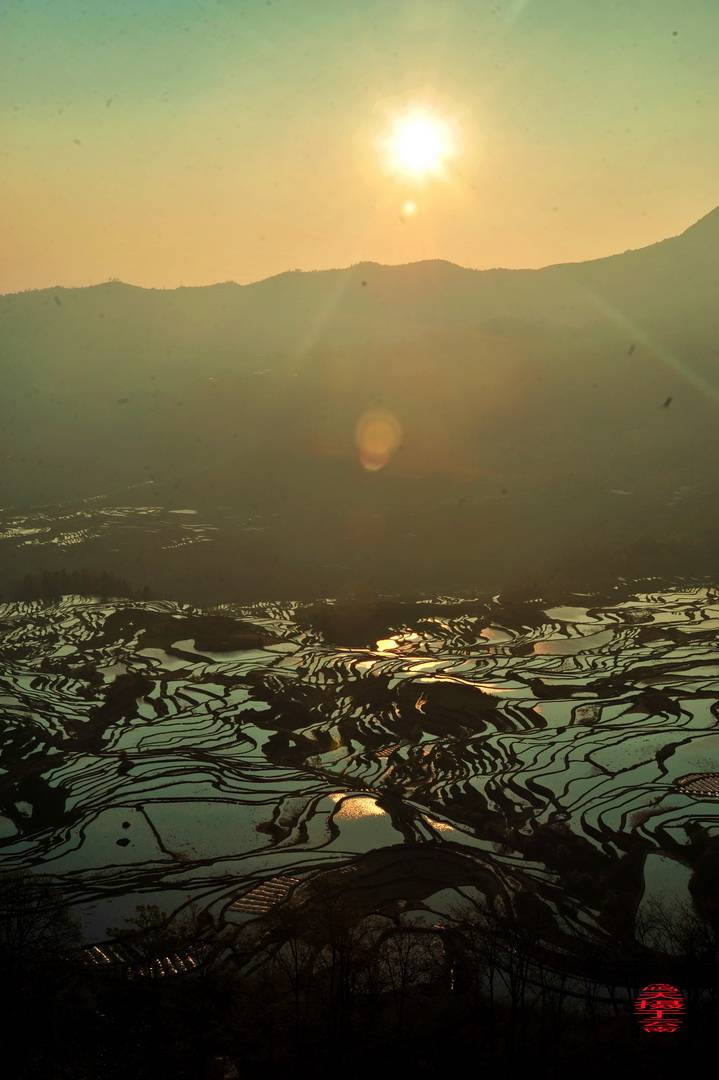 3月17日6点15分就起床,到哈尼梯田看日出:梯田遍布于红河州元阳、红河、金平、绿春四县,总面积约100万亩,仅元阳县境内就有17万亩梯田。元阳梯田是哈尼族人1300多年来生生不息地“雕刻”的山水田园风光画。 2013年(癸巳年)6月22日在第37届世界遗产大会上红河哈尼梯田被成功列入世界遗产名录,成为中国第45处世界遗产。