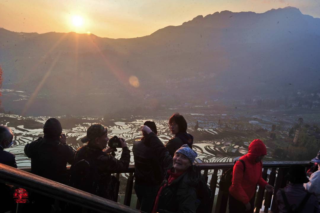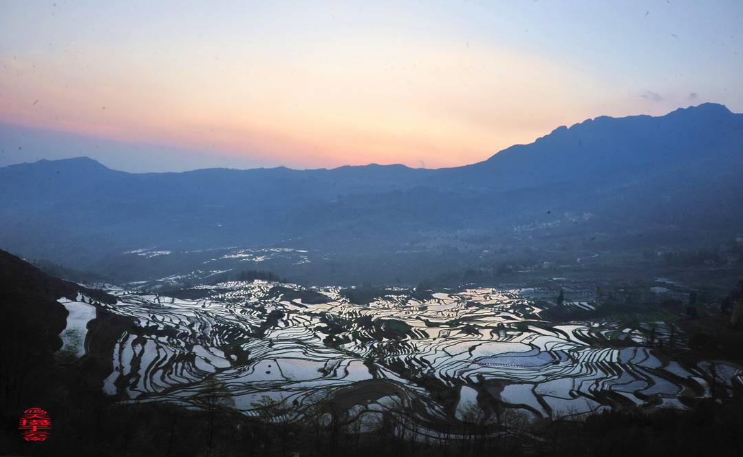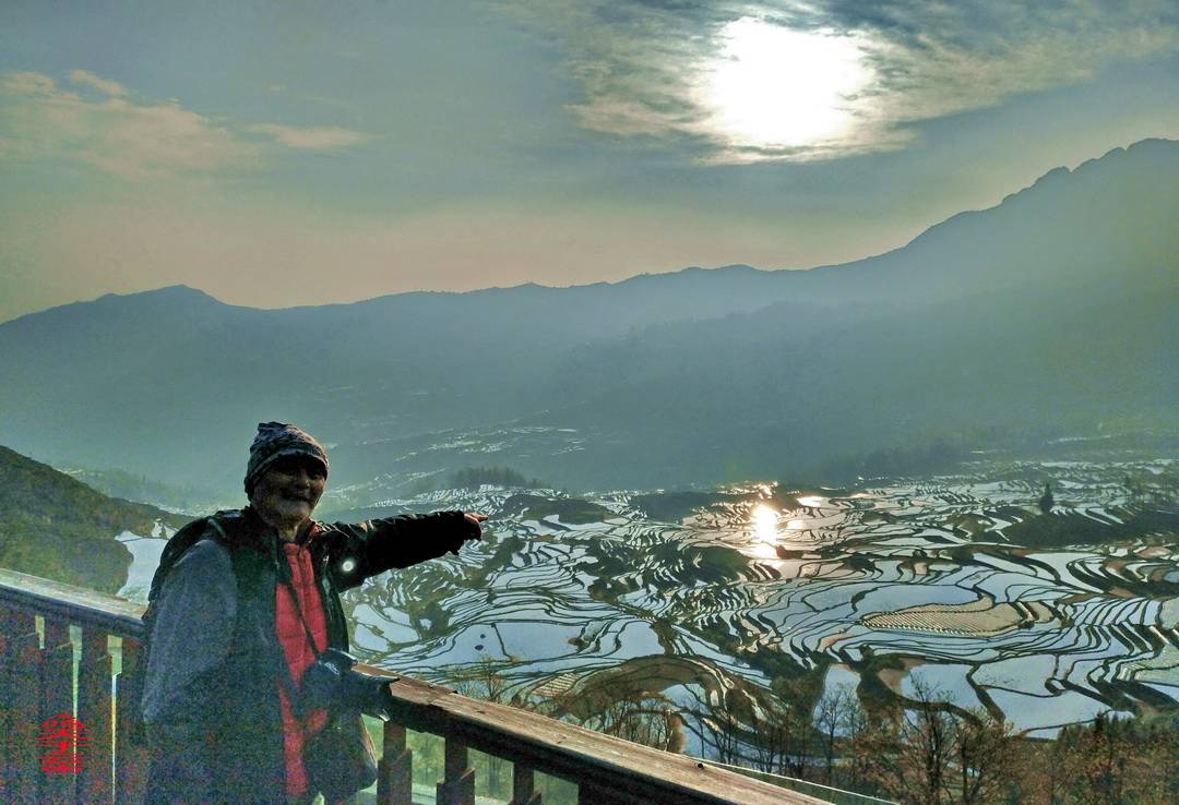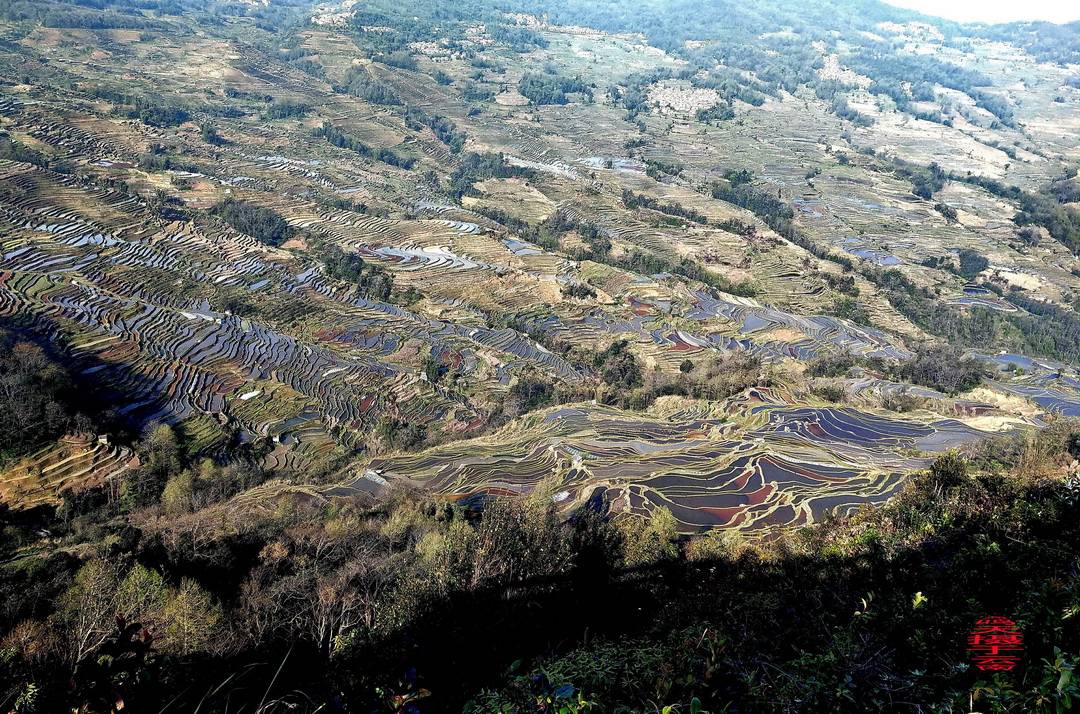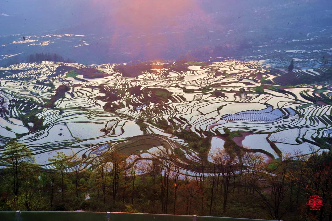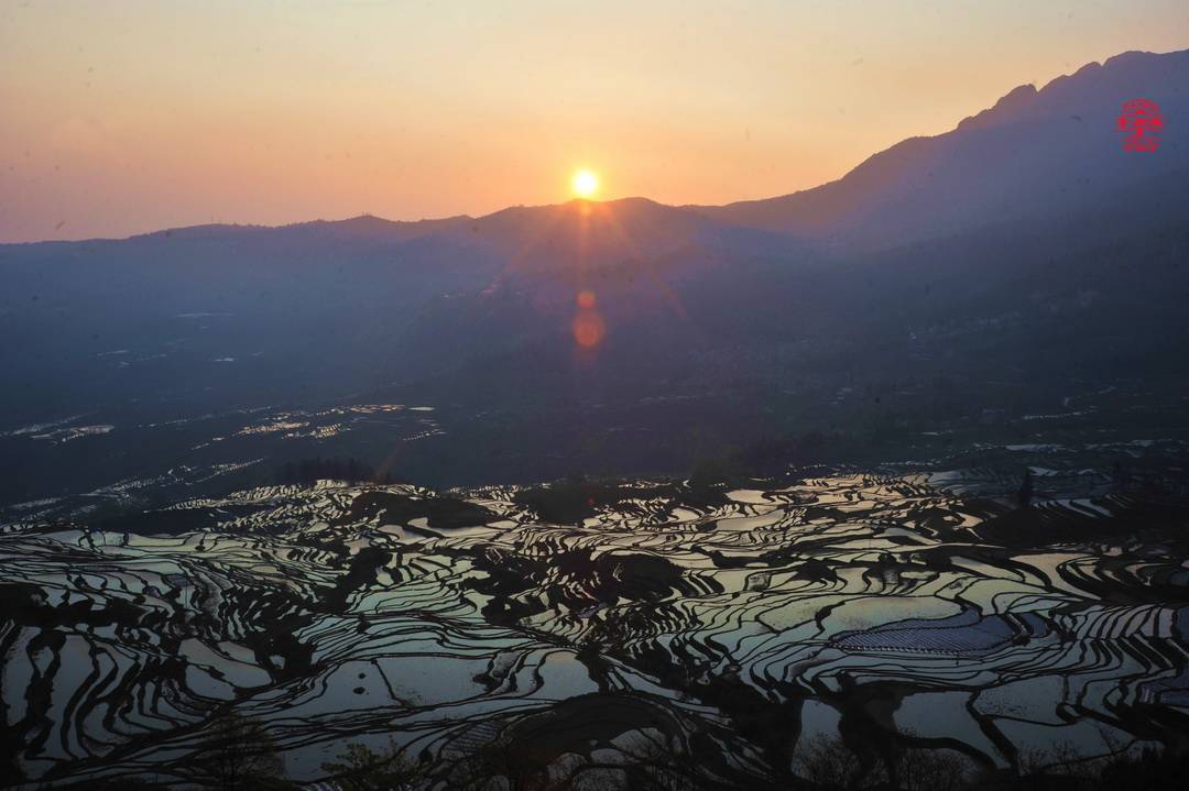 3月17日6点15分就起床,到哈尼梯田看日出:梯田遍布于红河州元阳、红河、金平、绿春四县,总面积约100万亩,仅元阳县境内就有17万亩梯田。元阳梯田是哈尼族人1300多年来生生不息地“雕刻”的山水田园风光画。 2013年(癸巳年)6月22日在第37届世界遗产大会上红河哈尼梯田被成功列入世界遗产名录,成为中国第45处世界遗产。