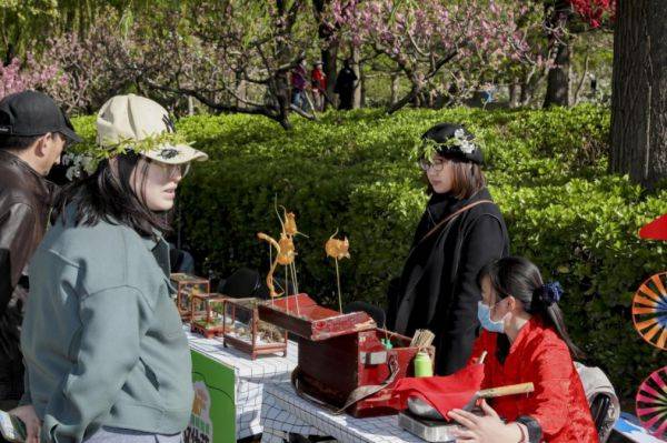 活动现场,非遗传承人展示风车、风筝、毛猴、京绣、插花、吹糖人等老手艺,将老河景展示在社会主义新时代下,让老手艺焕发新光彩。同时还会邀请社区“达人”表演太极养生仗、广场舞、健身操等表演,将新时代老百姓的娱乐生活、健康生活舞动起来,深受游人喜爱,不论老少,都在欢笑声中尽情感受春日的美好和节日的乐趣。