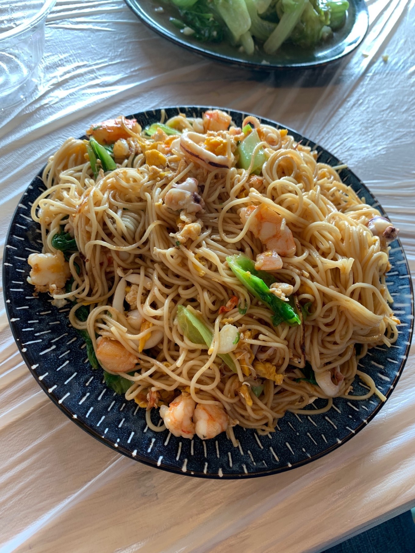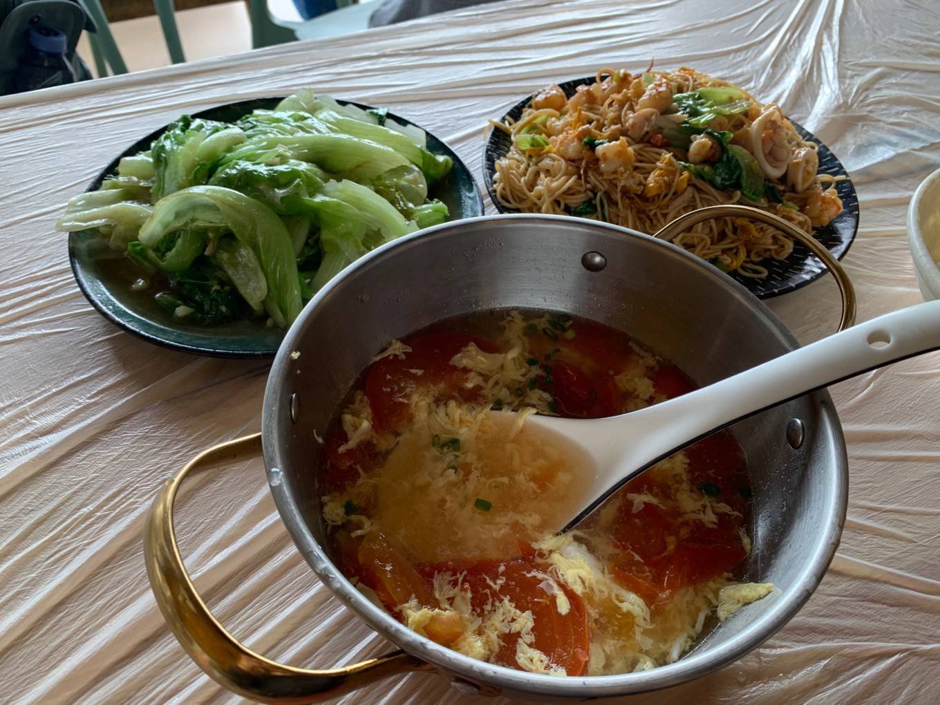 来到南湾街这边的小食光,大众点评有58元套餐,包了生蚝、油菜、汤、米饭,另外叫了个38元的海鲜炒面,也是很大份的。