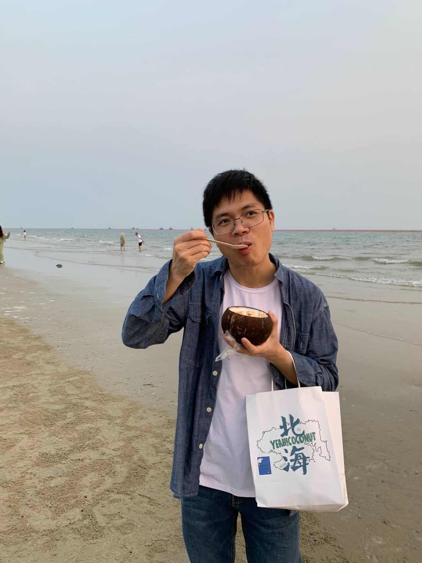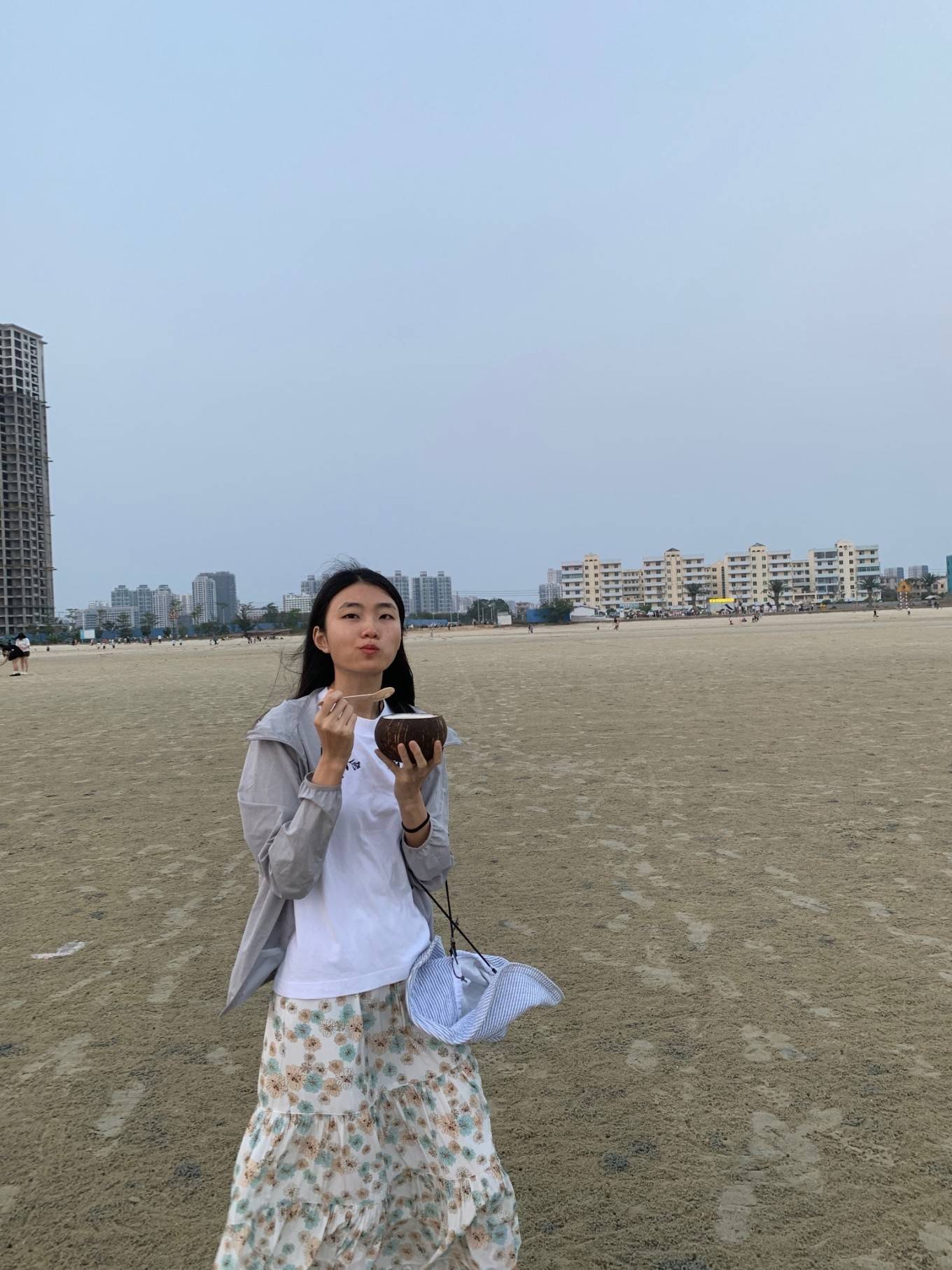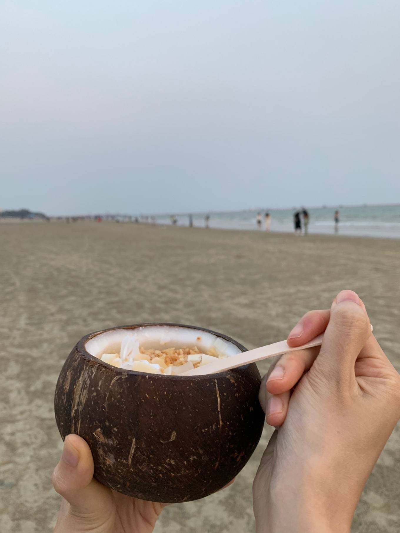 在海边吃椰子冻 好神奇的操作 顺便吃海风